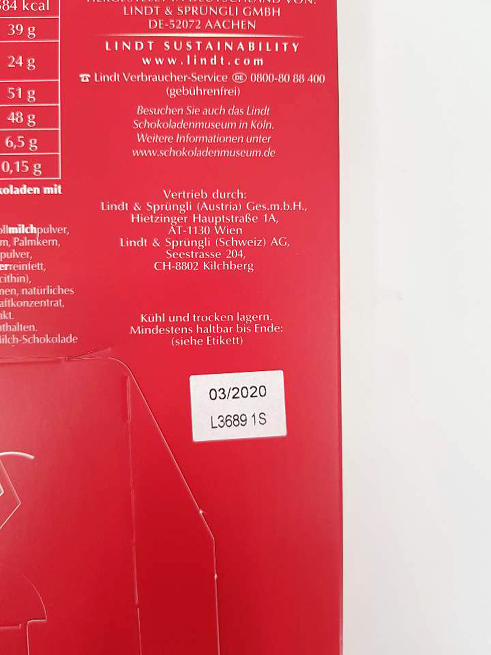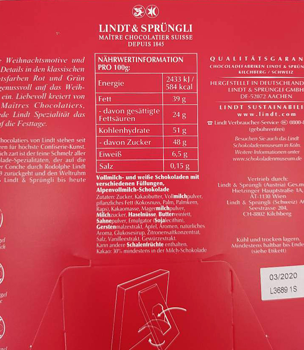 | 생산자 및 소재지, 수입품의 경우 수입자를 함께 표기 | Lindt & Sprüngli | ||